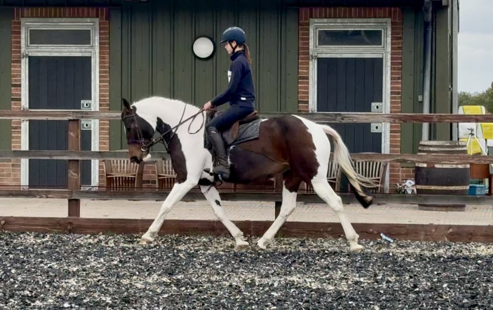 14.2, Welsh Part Bred, Tobiano, Mare, 6 years3 good paces. Good conformation, has been shown in handForward going but snaffle mouth at all times.Green in the school but very willing to learn and lovely to work with. She is very low mileage but ready to go out and see the world and become someone’s best friend.Has started jumping and absolutely loves it. Makes a great shape over a fence and is proving extremely bold and willing.Hacks alone or in company. Great with traffic.Good to catch, travel, clip, shoe etc.Amelia really is the kindest mare who wants nothing more than to please you. She has taken on everything asked of her and has such a bright future ahead of her.She is looking for her new family to bring her on and reach her full potentialVideo on request£6500ono