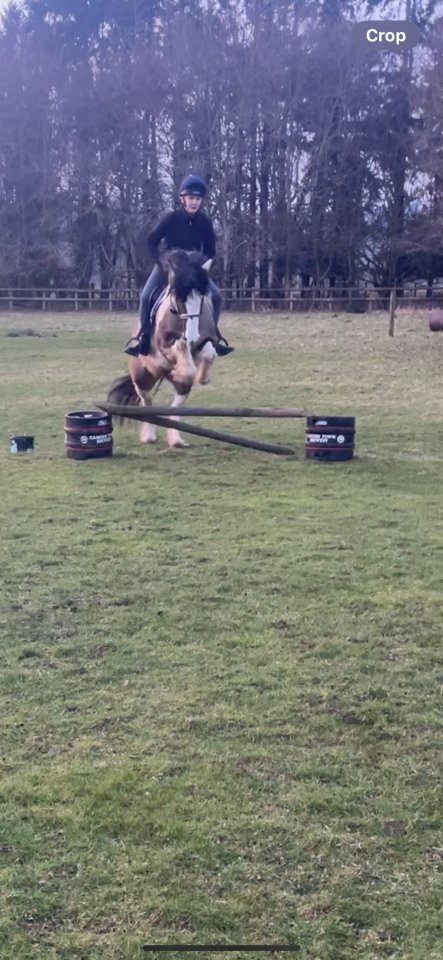 Ola is a 13.3 Skewbald 7 year old Mare Cob Type.Only available due to lack of rider and this pony deserves more.She was bought by my daughter 20 months ago as an unbroken 5 year old. She had been in the same home previously since she was 7 months.She is an exceptionally willing little mare with a great attitude. Broken by my daughter - lunging nicely and happy to walk trot and canter. Hacked regularly and will jump a log. She will pop a x-pole but not had much exposure to coloured poles.Shown once in hand and not phased by anything.She is still green for her age but not silly or spooky. She has lovely paces but still has a leg on each corner!My daughter has been travelling since November and Ola has had the winter off. Having now extended her travels it is now time for Ola to find a new home with someone experienced who is able to continue her education.She is pleasantly forward going but relaxed in her work with a pleasing attitude to learning. Ultimately given some more experience she will make a lovely Pony Club Pony or mother daughter share.She is extremely easy to do in all ways and loves a fuss and a cuddle. She is great with farrier (unshod), dentist, to clip and to load. She is fully vaccinated.We adore this pony and it is a heartbreaking sale but we feel that it is only fair on Ola to find someone that will enable her to reach her full potential.She will only be sold if the right home is found.Plenty more photos and videos available on request.£3250 Tack Available