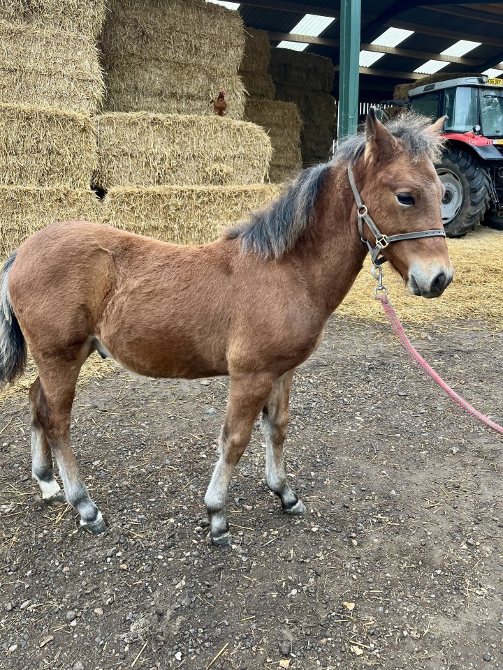 Show quality fully reg Welsh Section C bright bay yearling filly, born April 2024. Beautiful head and superb conformation, this girl really does have all the makings to be a superb top show prospect in hand and then under saddle when older. She will mature to the full 13.2hh.She moves beautifully and I know she has bright future ahead and will be one to watch. She has top show winning bloodlines all the way through. She is very people friendly and has a kind nature. She is easy to catch, good in the stable, ties up well, leads in hand well, fully respectful of electric fence, loads and travels well. She turns out nicely with others or also happy to be left alone if other horses are going out of the field to go riding.She is wormed to date, feet trimmed. Full WPCS passport and microchipped.£700