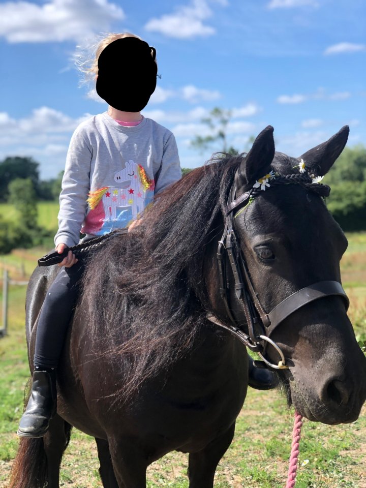 Sharptor ThomasinaRegistered Black Standard Mare 6yr old 40/41 inch when last measured. Professionally backed and ridden away as a 4 yr oldBright, busy, forward going mare that jumps beautifully, hacks well, good in traffic, not spooky, good to load, catch and good with farrier and dentist. Eager to work. Happy on and off lead rein. Whilst she is incredibly bombproof and confident in nature, she has proved in her previous loan home that she needs a slightly more confident/strong rider than a tiny tot learning how to ride. She’s a sweet mare that loves attention and a cuddle. She would benefit in a home that will keep her busy, she needs a job in life. Hampshire Rachel 07834812688