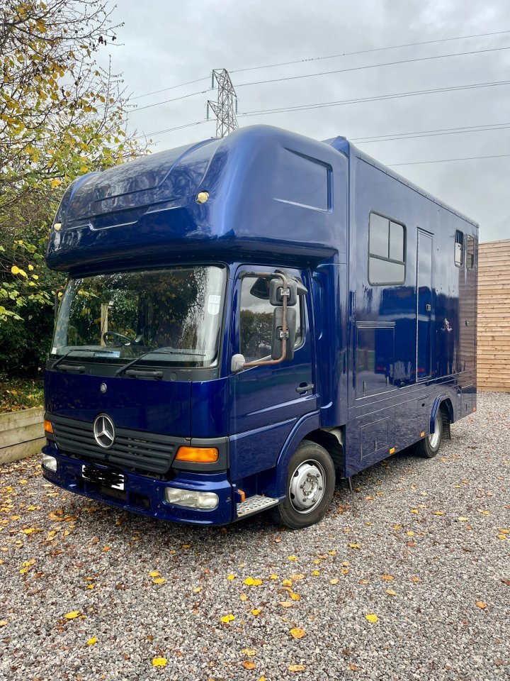 A lovely short wheel based 7.5T lorry which is super easy to drive and manoeuvre. We have owned this for 12 years and it’s always been very reliable.2003 with only 149,900 kilometres on the clock - regularly serviced (receipts available) and plated to the end of October 2026.HORSE AREA:Spacious and stalled for 2 large horses, no tack boxes etc in the horse area.The ramp has recently been re done (photos available) and easy to use.Aluminium floor in horse area.LIVING AREA:Comfortably sleeps 4, 2 above the luton and a bed which can be converted from the seating area.Gas hob, sink and worktop, seating and table.2 saddle racks in the living area.Ample storage lockers.Happy to provide videos or answer any queries.Located between Newbury and Basingstoke £12, 950 OnoPlease call Richard for more information on 07766 168 776 - our reception is quite poor so please leave a message if we don’t answer and we I’ll call back.