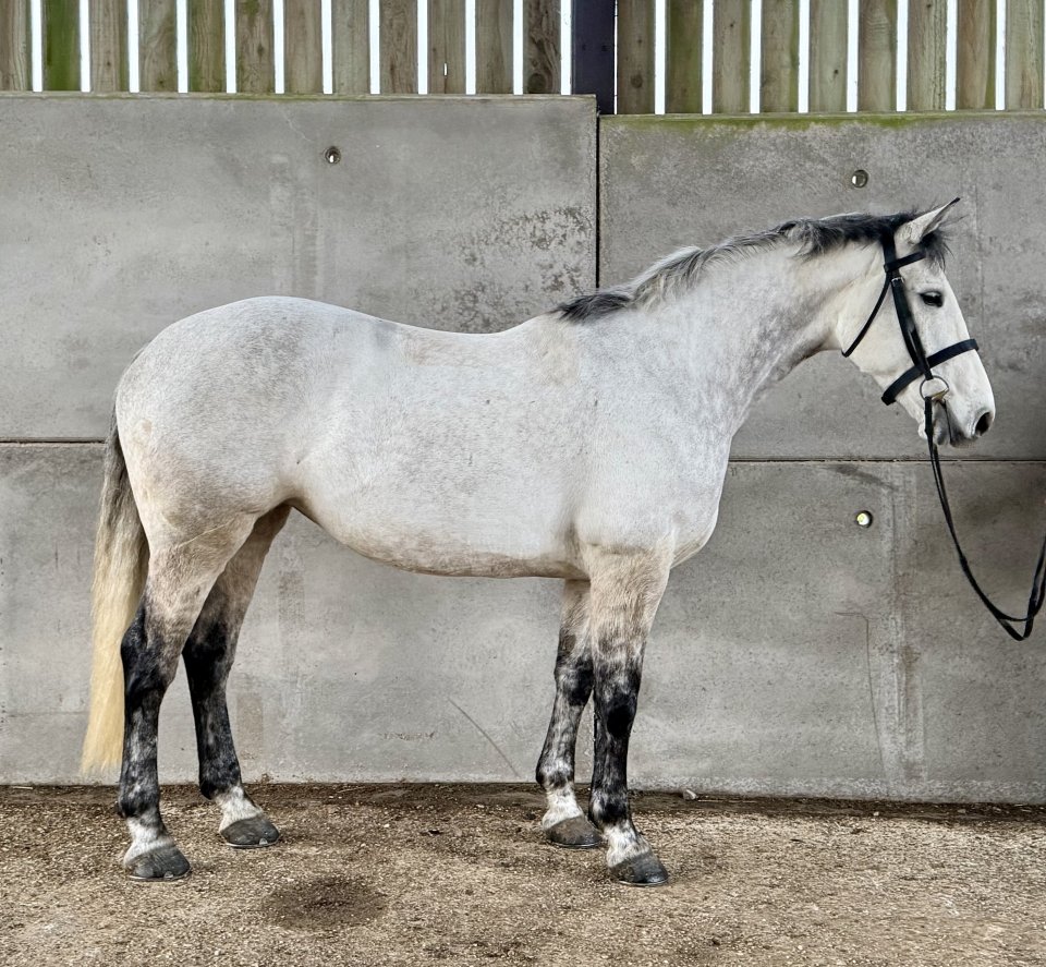16.3hh 6yr old Coloured Gelding by Sempers Spirit 3 good paces with a bold scopey jump, capable of producing a nice test. Genuine and straightforward to a fence showing promising ability. Has been to arena hires, XC schooling and a couple of shows with previous rider. Hacks alone and in company, great in traffic and open spaces. Good to shoe, box, clip etc. He presented 1/10 on hind flexion in a recent vetting, we have taken advise from our vets and given him some remedial shoeing.His price reflects that he is unlikely to pass a vetting at this time. £8000