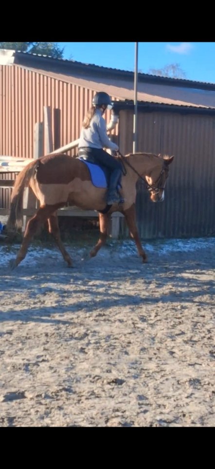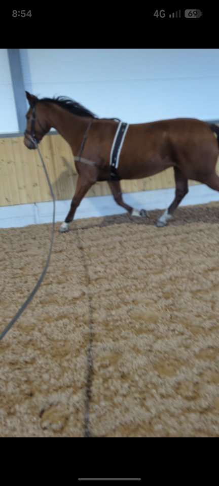 I bought Bruno as a raw three year old recently imported from Ireland, a year ago.He's turned into the sweetest horse, follows me mucking out yawning in my face asking for scratches. Sees me in the distance and waits in the closest corner of his field.Good with feet and farrier, had teeth done, vaccinations all up to date,easy to catch, good with rugs, seen physio, always called a good stamp. He lunges to voice, will do every transition, lunges in the big arena, stays at my asked rhythm. I wanted to break him in myself but got pregnant and been extremely ill during the last four months but he really wants a job. I've got him used to stretchy surcingle and breast plate and started with a soft solid roller but stopped because he had a big gap due to me getting hyperemesis. He lunges 10 to 15 minutes, always good now and loves his hot wash bath after, good with a face wash, loves a face dry and stands in cross ties. He can jump to. He likes to pop a jump but we have mirrors and I'm too scared to lose jump him as he fancies himself.£3000 open to offers