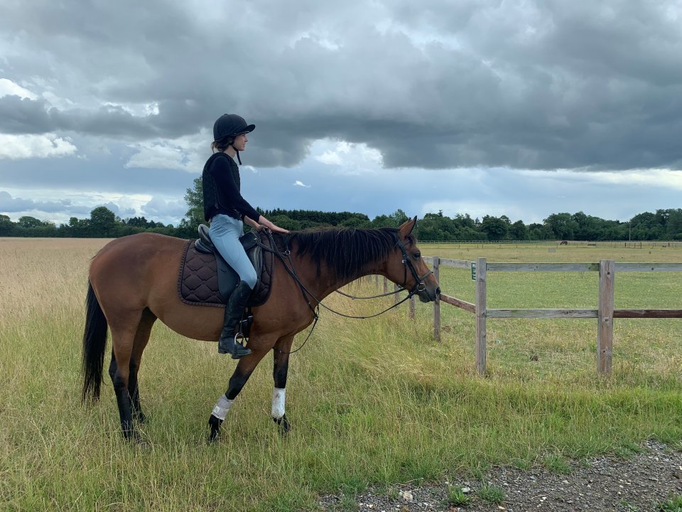 This is a very sad sale as Monete is an absolute sweetheart, but finally, the time has come to give my mother a ‘human’ grandchild, and I worry I will not have the time or energy to give this mare the attention she deserves. Monete loves her job and needs someone who can continue her education. She is a 16.1h TB ex-racer, RoR-eligible, rising 9. Retired sound from a short racing career. Sire: Jukebox Jury Dam: Mayumi Monete has racing royalty in her blood, including Sadler's Wells, Northern Dancer and Rock Of Gibraltar.She is one of the sweetest mares you will ever meet, and she loves nothing more than a cuddle, groom and chin scratch. She has such a nice nature that even my non-horsey husband likes to fuss her with no fear, she is just a big Labrador.Clean limbs, no lumps or bumps. Open to vetting.She is good to be clipped, shoed and loaded into a horse trailer and box.Up to date with teeth, shoes, saddle, physio and vax. I bought Monete from the field and have slowly brought her back into work this past year. She is a very willing horse, eager to please. She has come so far already, but still needs someone who is experienced and confident to carry on her education. She has three wonderful paces, and has attended various dressage lessons, pole clinics and horse agility training (Kelly Marks' intelligent horsemanship). She feels very comfortable in the arena and is going very nicely.As I have been building her up slowly, I did not want to overface her with jumping just yet, but the few lessons we have had have shown she has scope and really enjoys it.Happy to hack out in front or behind. Confident and bold type when in company, she will take anything in her stride and confidently walk up to and past heavy machinery when others are less confident. She can throw an excited buck.She is still green when hacking out alone, so she needs a confident, calm and knowledgeable rider who understands TB’s, as she can be anxious and sharp. I have found that she responds well to regular, consistent work. Monete has excellent ground manners, but she can be sharp when spooked, the typical TB behaviour. Therefore, she is not a novice ride or suitable for an inexperienced/ young teenager. Happy living in or out. Happy to share a field or be alone. 4000k with saddle and rugs, but a good home is more important.