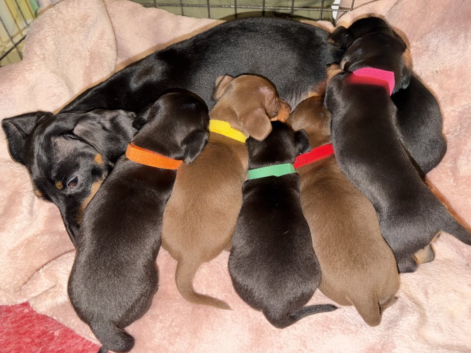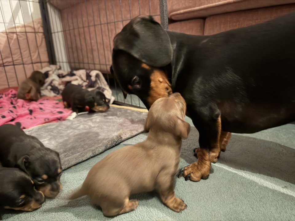 5 beautiful babies looking for their forever homesDad is a miniature kc registered Black and Tan, mum is a miniature (very very small) kc registered Black and Tan miniature 1 x chocolate girl 2 x black girls 2 x black boys All puppies will be vet checked, microchipped and receive their first vaccination prior to leaving. Each puppy will come with a bag of food and blanket Both parents can be viewed and cuddled alongside the puppies Please email in the first instance with your details and contact number and I will give you a call £1000 (a 200 deposit must be paid to secure puppy, with 800 to pay upon collection of your puppy)Puppies available to be viewed now, with both parents, loving forever homes only because I would keep them all if I could These beautiful little sausages will be ready for their new homes 17th January