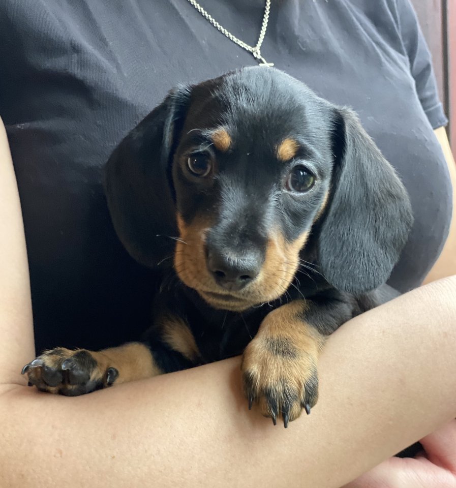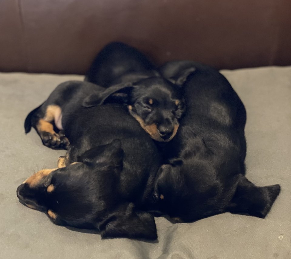 Gorgeous KC Registered Miniature Smooth Haired Dachshund puppies available to loving homes.One bitch puppy and one dog puppy available. Both Black and Tan.Raised in our family home - their mum is my beloved companion. The pups are curious and friendly. Crate training has begun. Regularly wormed since two weeks old, vet checked, microchipped and first jab already given. PRA Clear (hereditary clear).Each pup comes with 5 weeks complementary pet insurance through the Kennel Club / Agria, plus a puppy pack (to include, but not limited to): a 5 generation printed pedigree, health and care information / records, transfer documents, a blanket with litter mates and mum's scent, a toy, and food for the first few days in their new home. Happy to give on going advice as the happiness and well being of these pups is my top priority. DOB 06/01/2026. Available from 10/03/2026 (at 9 weeks old). £1,200 each.