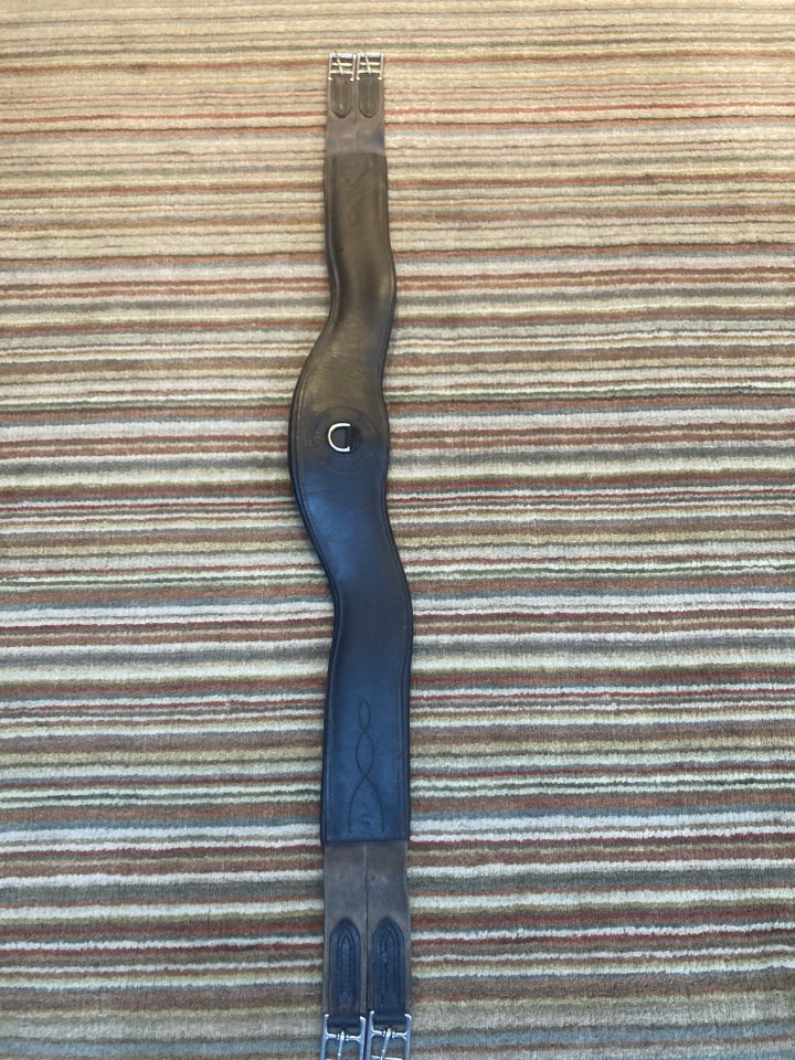 Brown leather comfort girth. 48" made by the Saddle Company.from the company website, retail £109 but selling for £30 happy to post at buyers cost. Used condition.The underside padding is made from a soft, smooth, and flexible calfskin. The outer side is sturdy leather with The Saddle Company Logo engrained. The roller buckles feature strong doubled elastic on both sides.The girth is shaped so that it has an anatomical arc which contours forward and around the horses elbows, while allowing the girth straps to sit farther back.The girths contoured shape allows the saddle to be properly positioned behind the horses shoulder blades, whilst keeping the girth at 90 degrees to the floor.