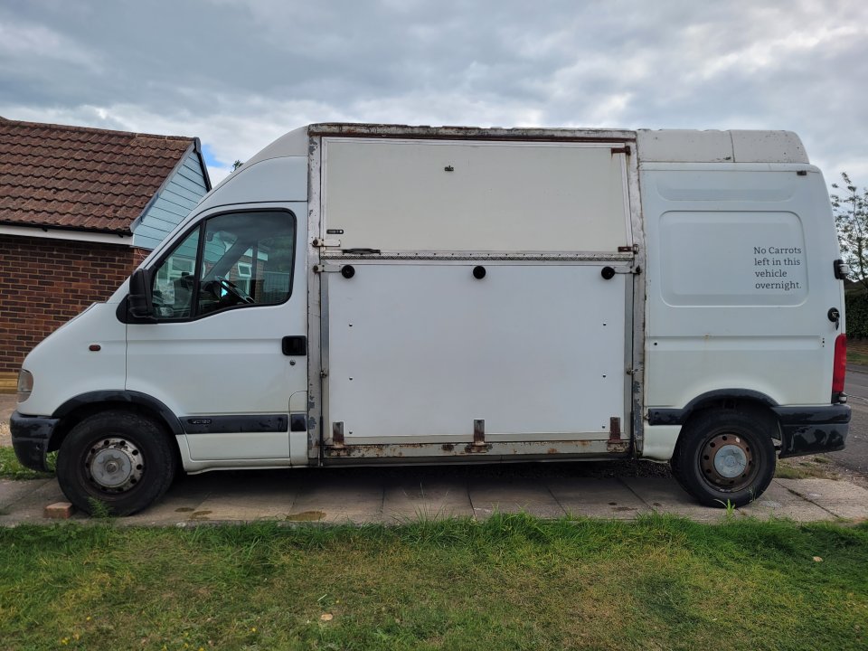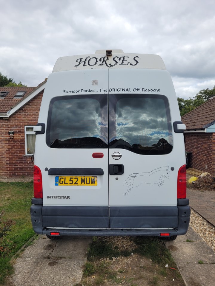 2002 Nissan Interstar182829 miles1.1 payloadMOT till Jan 262 roof ventsEmergency exit door with bar that drops if horses get overHorse area camera and reversing cameraConverted by Three Countries Horseboxes in 2010Aluminium floor with removable matting and drainage holesNew ramp 3yrs agoDoes have normal wear for its age but great box to drive. The clutch was a bit sticky last time I drove it and hasn't been used for a few months so will be sold as seen.Open to offers