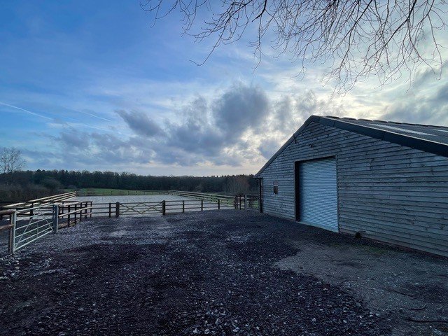 Sole use livery yard with outdoor school available for rent in Bentley Wood, Farley SP5American style barn with 6/7 loose boxes and secure tack roomSeparate stable block with 3 stables plus storeSeparate open sided hay storeNew outdoor sand/fibre school8 acres of grazingDirect access to hundreds of acres of off-road hacking in Bentley WoodPrice £1500 per monthWater includedElectricity additional (metered)Available from January 2026, viewings from 11th January