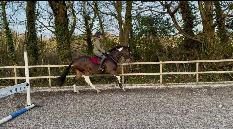16.3hh 6yr old Coloured Gelding by Sempers Spirit 3 good paces with a bold scopey jump, capable of producing a nice test. Genuine and straightforward to a fence showing promising ability. Has been to arena hires, XC schooling and a couple of shows with previous rider. Hacks alone and in company, great in traffic and open spaces. Good to shoe, box, clip etc. He presented 1/10 on hind flexion in a recent vetting, we have taken advise from our vets and given him some remedial shoeing.His price reflects that he is unlikely to pass a vetting at this time. £8000
