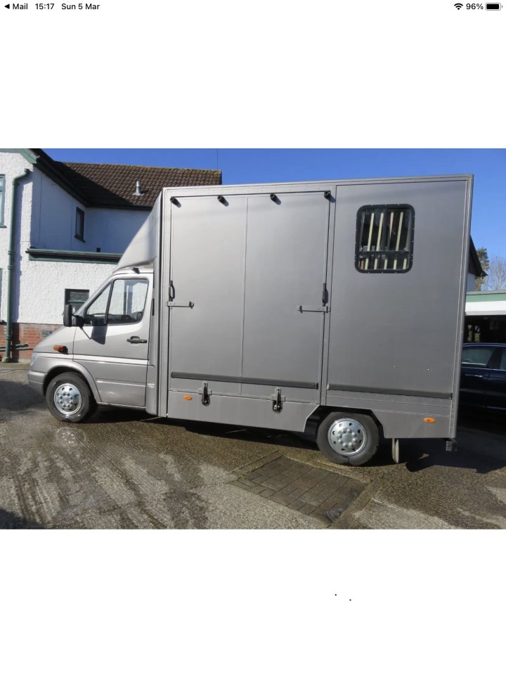 Mercedes Sprinter 3.5 T (trainers box) 5 cylinder diesel, 5 speed. This vehicle has been a horse box since new, body in very good condition, side ramp, aluminium floor. Needs to be viewed to be appreciated. Will have 1 yrs MOT as runs out February. Very reliable start and easy to drive. X503 GTP. Telephone 07771 703300. £7k Ono