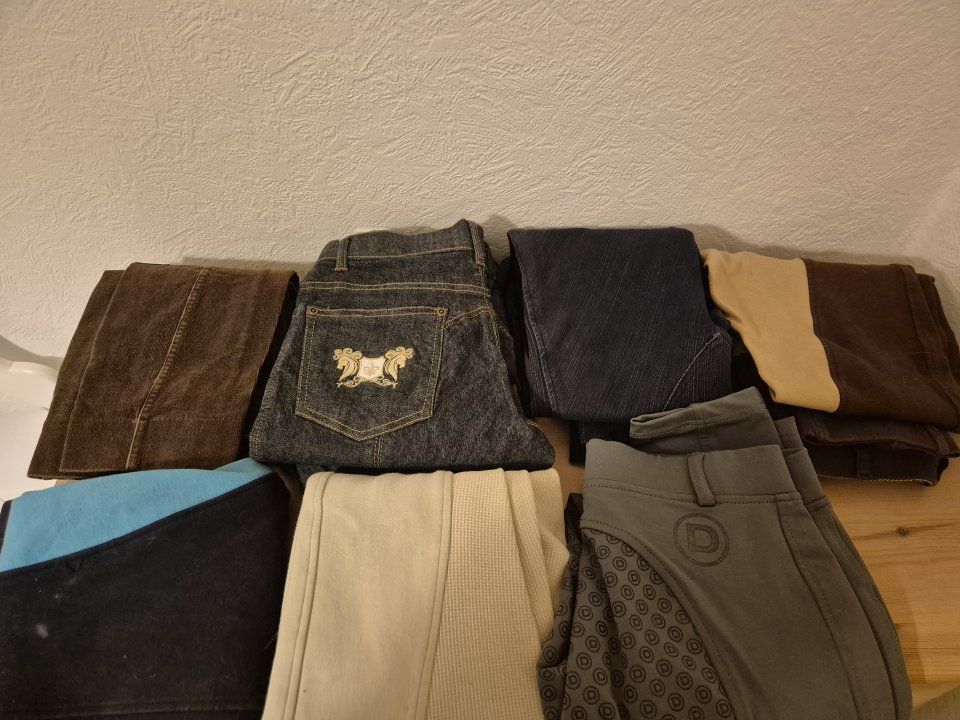 *Shires cotton creations brown cord effect 24"*mark Todd denim breeches 24" worn once*rhinegold denim effect 26"*Shires two tone brown 26"*caldene beige breeches with "sticky bum" 26" - well worn*Shires two tone blue, white mark on knee 28"*Dublin grey with "sticky bun" 28"
