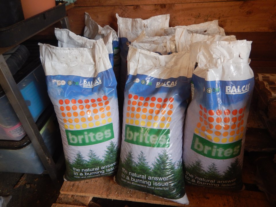 Nine bags of 10kg Balcas Brites Wood Pellets for Horse Bedding (or heating). One bag opened but full, 8 bags still sealed. £14.95 a bag RRP - but currently available around £6.50 a bag from wholesalers. All 9 bags for £40 cash. Collection from Sway.