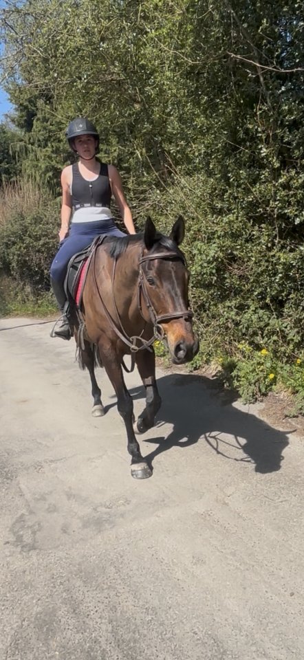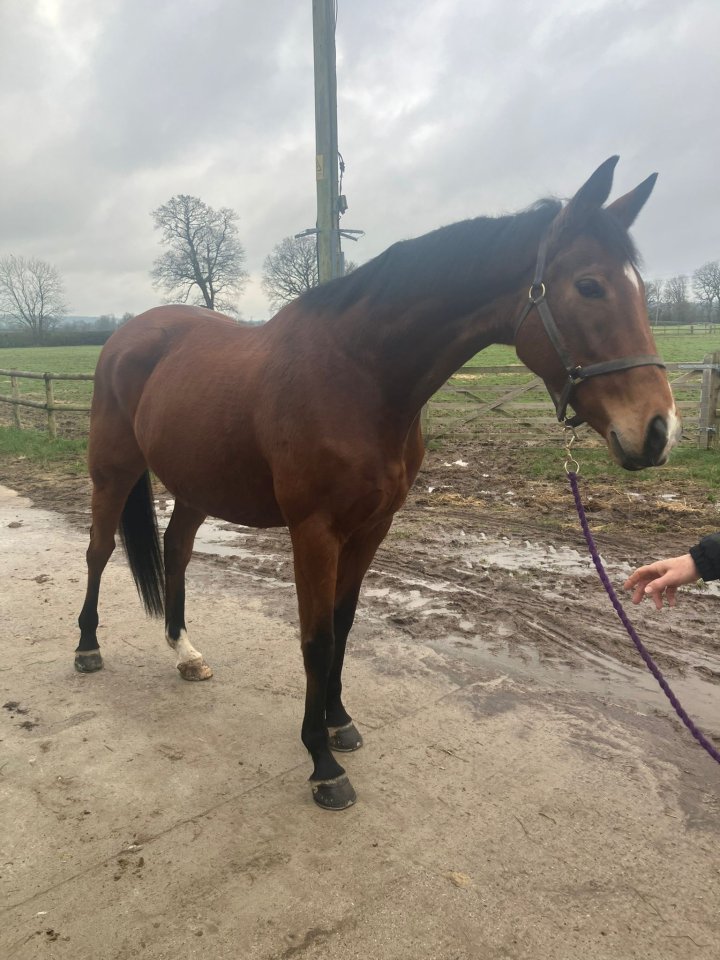 16.2ish 11 year old bay mare, ror eligible. Sudona retired from racing sound at 7, had two foals and has been professionally re started over the last few months. She has great confirmation and excellent strong feet and moves totally straight. She has a small scar on one of her back legs but is otherwise completely clean. She hacks out and is very good in traffic, only thing she has spooked at is very rattly trailers! She has hacked on her own but prefers to go in company although she is very happy to take the lead. In the school she works sweetly in walk and trot and will have a little canter. She stands nicely at the block to mount and doesn’t seem to vary if she has a couple of days off. On the floor she is excellent to lead, shoe, catch and faff with. She is absolutely not for a nervous or novice rider, mostly she is fine but she can be a little sharp, usually because she spots something in the distance. While I wouldn’t describe her as nasty and she has never tried to get me off, she can sometimes ‘freeze’ if she is tense about something and also can be a typical tb and tap dance on the road if she gets a bit overexcited. Going foward I imagine she will probably need a bit of maintenance/management for her to progress further than where she is currently. Alternatively she is a proven broodmare and would be an asset for someone wanting to add to their breeding program. Home more important than price £2500 ovno