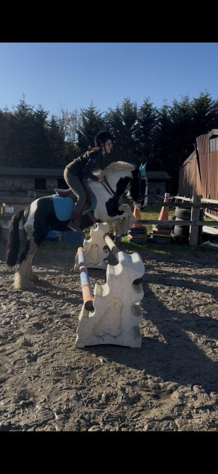 Pippa - full up 14.2, 8 year old cob mare.Pippa is a super sweet and fun little mare that’s done a bit of everything. Takes the leg well and looks and rides more 15hh. Showjumped to 90cm over in Ireland winning a winter 80cm league last season, she’s well established round a course of fences. Done fun rides/hunting/pony clubbed. Hacks alone and in company and isn’t phased by the machinery around the farm here. Leg on ride until you get the jumps out! She loves her jumping, she’s keen and can be strong to jump but a real point and shoot type that makes you giggle and just want to keep having fun! Very genuine and not trying to run off with anyone just enthusiastic. Rides on the flat in a snaffle with stronger bridle for jumping/fast work which she is totally manageable in but for this reason probably wouldn’t suit a tiny or novice rider.Whilst she would happily carry on and have fun whizzing round some courses, please don’t be put off and think she ‘needs’ to be out doing something. She’s just as happy hacking and doing some polework so she doesn’t need a job but she would do one if you wanted to! Boxed up to the gallops with us recently and worked sweetly in front and behind and enjoyed a little outing. Pippa is an absolute pet on the ground. She is super easy to have around, lives for a fuss and a groom (and a carrot or two!) and really is a best friend type. Good to catch/farrier/load/travel etc. Passed 5 stage vetting before import. £9750 Ono 07581238106 - please WhatsApp message for videos. If you call and I don’t answer please send a text - NOT voicemail (they don’t work on my phone!) and I’ll get back to you.Located Farnham Surrey.