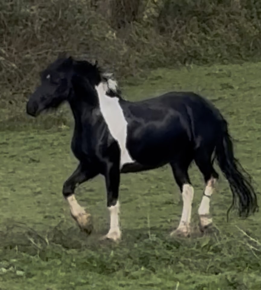 Friesian cross cob 4 years old homebred mare for sale. Standing at 15 Hh now. Sire is a 16Hh full Friesian can be seen on viewing. Dam is 15.2 cob x friesian mare. Both sire and dam have fantastic temperaments which she has inherited from them. She sees the Farrier on a regular basis and is halter broken she has been left to grow and mature . She is a blank canvas ready for someone to put their own stamp on. She is straight and correct with fantastic movement and well marked a real head Turner making her a fantastic prospect for any sphere. She has slightly rubbed her main and tail. Videos of request. Only Selling due to cutting down. Good Home, a must no time wasters. £4000