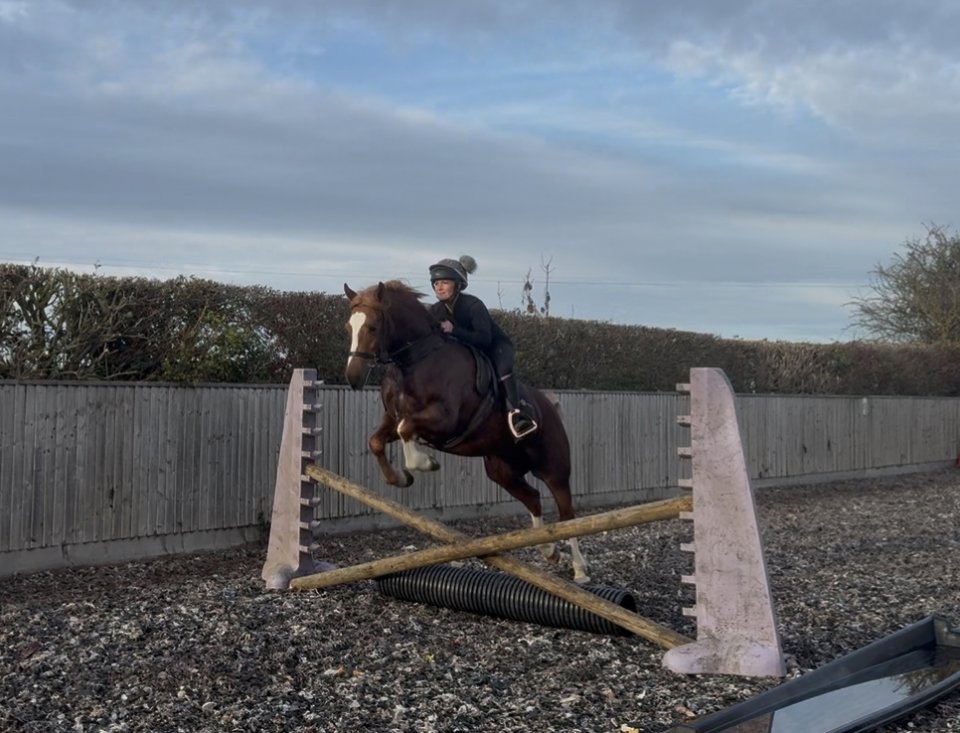 Professionally broken last summer and turned away to finish growing, started his retraining in February, jumping small courses enthusiastically including water trays proving to be bold. Has hacked including ridden through water, seen traffic and walkers with dogs. Schooled lightly with lovely paces.Bought directly from the breeder as a companion for our horse with the intention of becoming our daughters next horse but exams and other interests have led to daughter giving up. He has had a couple of months schooling and now he is having some time off before he goes off on sales livery. He's available at a price less than I paid for him when he was 2 and completely unbroken, sold from the field only to a knowledgeable home who has the time, experience and facilities to take him on to the next stage.He is very kind but he is anxious here due to an experience in the field, happy to discuss further. We know he is very settled away from here as he was chilled in the schooling yard but he needs to build confidence as he is a young horse and learning. He is sound and healthy having passed a vet check when purchased and was checked by my vet on arrival with no issues found. He has had a good start with a professional yard and is a blank canvas ready to start his career. Open to vet. He has been seen to weave mainly at feed time and when stressed here but if in work and relaxed he doesn't do it. Likewise he has copied our ex racer who crib bites but again when in work and relaxed doesn't do it, he apparently wasn't seen cribbing in the schooling yard. These behaviours can easily be managed they are not entrenched in my opinion especially as he is young and learning.We are looking for a kind and knowledgeable home before he goes away again when the price will go up to reflect the training. £5000 if sold in the next week. Phone calls only, I am working but will get back to you. Plenty of photos and videos available. This is a sad sale, my daughter has given up riding but is very attached to him. We would like to stay in touch with the buyer.