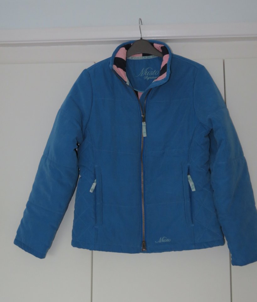 Ariat and Musto ladies clothingAriat lilac purple ladies down filled jacket size Small (Pic 1) Smart comfortable jacket. Pure down filling means it is very lightweight but warm. The jacket does have one or two very small nicks to the fabric on the back of one sleeve if you look closely, easily fixed with a stitch or two. Very expensive new. Machine washable. Used but in good/very good condition still. £7Musto jacket with soft peachskin outer. Ladies size 10 in navy with red trim (Pic 2). Quilted/padded lining and a tie belt. Machine washable. Beautiful jacket only worn twice. £8Musto turquoise blue padded jacket, ladies size 10 (Pics 3&4). Lovely colour, smart comfortable jacket which machine washes. Used but in good condition still. £5Additional pictures available upon request. Happy to post if buyer pays postage and will combine postage for multiple items to keep posting costs to a minimum. Genuine enquiries only please, no timewasters. Tel: 07932 063707