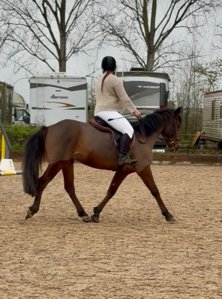 Lilly14.2hh4-year-old (rising 5)Connemara x Thoroughbred mare£4250 (no offers)Lilly is a very pretty, kind mare with a laid-back temperament. She was professionally backed and started under saddle (English and Western) earlier this year in May until December and has had a good foundation, but she is still young and green and will need someone happy to continue her education.She has hacked alone and in company, proved sensible in traffic, and worked comfortably in walk, trot and canter in the school. She has cantered happily in open spaces with other horses and does not get strong or silly. She has attended polework, small jump clinics. wester clinic and shows a bold, genuine attitude with a nice jump.On the ground, Lilly is easy and mannerly. She is good to catch, enjoys being groomed and fussed over, stands quietly for the farrier (currently barefoot), loads and travels well, and is not bothered by hoses or general yard activity. She lives happily in or out with mares and geldings and is not dominant in the field.She has clean limbs with no lumps or bumps and no known veterinary issues. She is up to date with worming and dentistry and has started her vaccinations.Lilly is now being sold from the field, as she is back from training and I do not have riding facilities, so she is not currently in work and is therefore priced accordingly. She would suit a knowledgeable, kind home looking for a young horse to bring on, rather than a novice rider.A genuine, sweet mare with lots of potential for the right person BUT will only go to a good and forever home. Open to vetting.Serious enquiries only, please.
