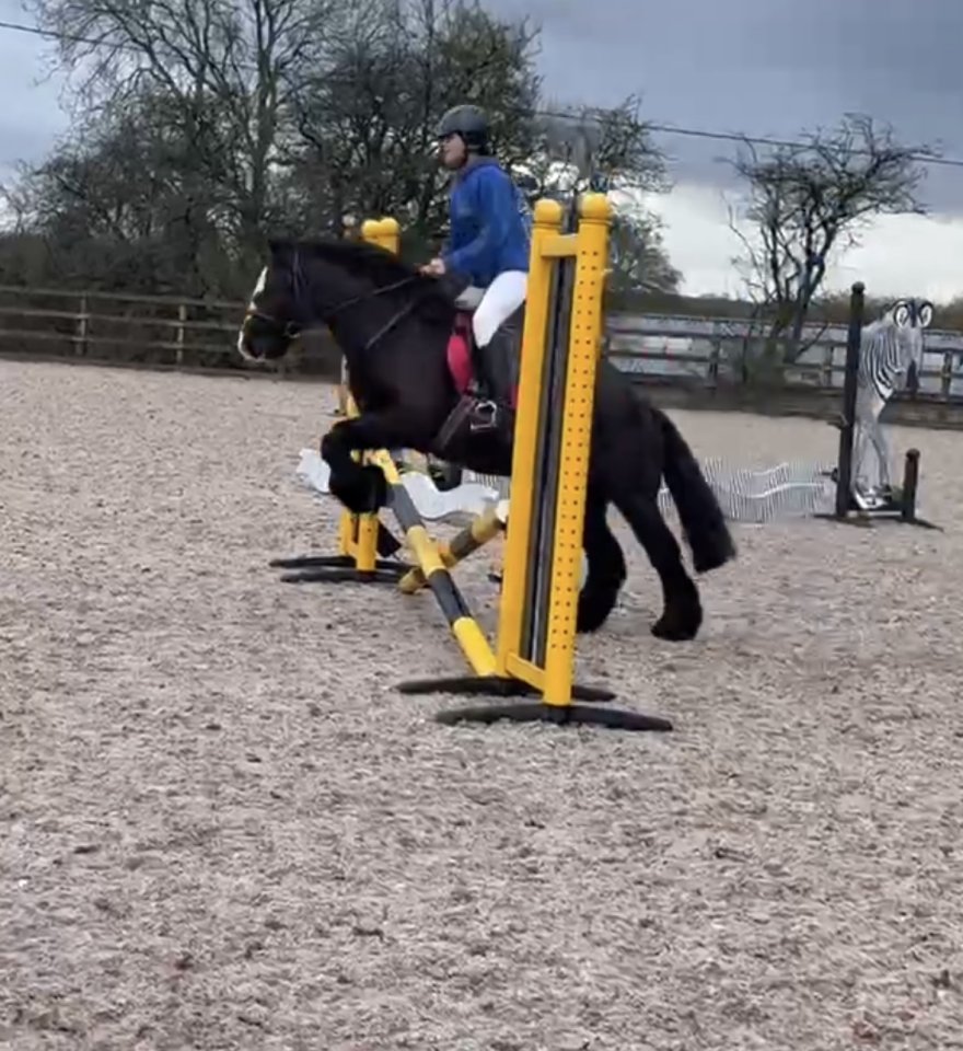 Ebony is a 12:2, 7 year old cob xShe has three sweet paces, happy to pop round a course of fences and good to hack.She has previously been in a riding school, but most recently has been a family pony.Ebony would suit as a second pony, she can be a bit cheeky and put in a buck. This isn’t pain related, she has been fully checked out by the vets. She just can get a little excited. I think that with more regular consistent work this would resolve.She would suit a more competent little rider, looking to be an active pony club member