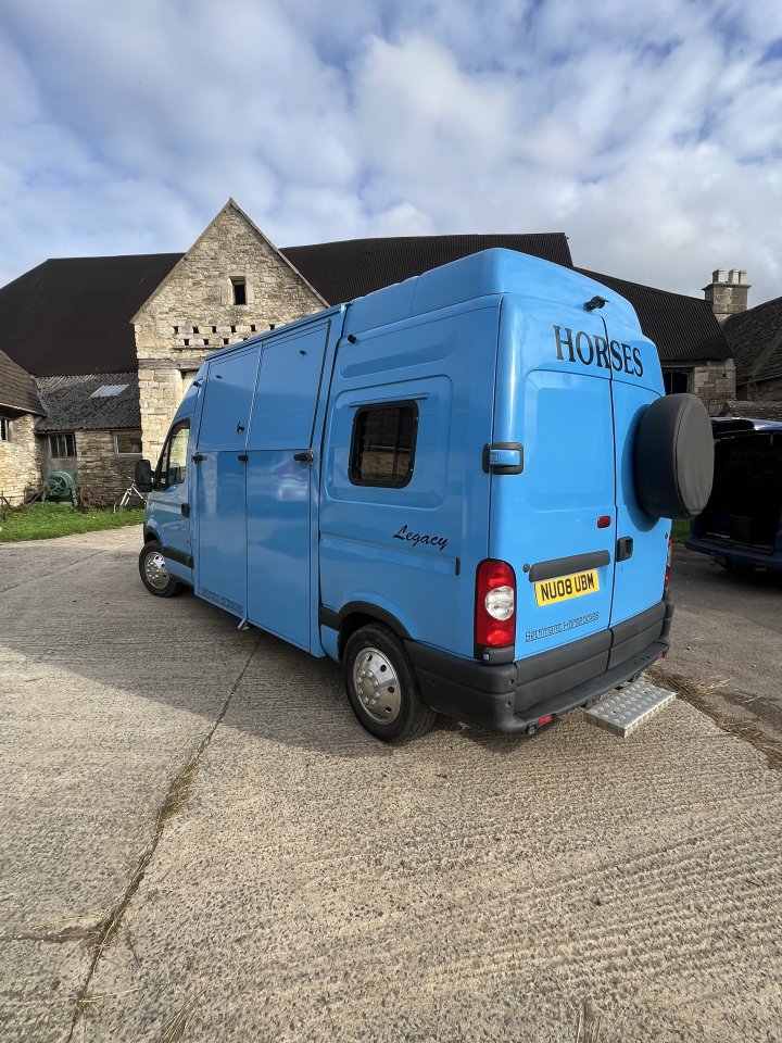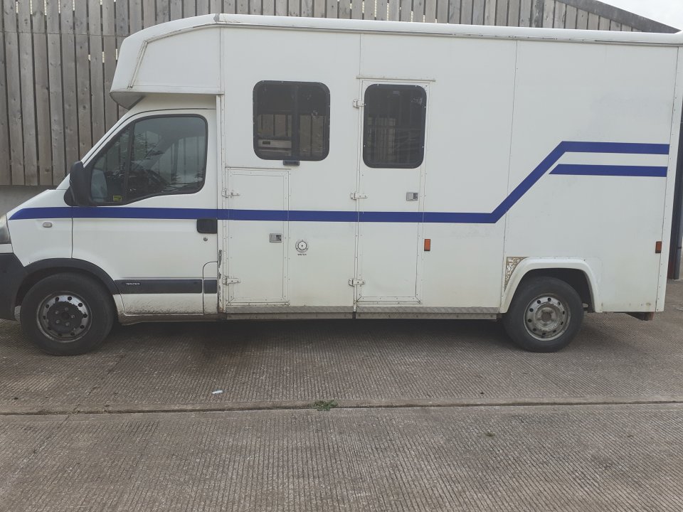 I have for sale my lovely Vauxhall Movano high to[p 3.5t horsebox. Brand new MOT November 2025White Vauxhall Movano DTI 3500 LWBEngineer size 2799 CC2-Axle-Rigid BodyDate of registration is 27th September 2001Milage 89kGood solid ramp with doors same moulded to the contour of the body, this lorry is regularly checked by a well known local company who keep the lorry in tip top condition.Regularly Serviced and looked after. Lorry is in constant use and will be until it is sold.No expense has been spared on this faithful lorry. It has had new clutch and recently new slave cylinders. All MOT work was completed by the garage and I have extensive folder of all works done, it previously belonged to a good friend so aware of all the history and how well it has been looked after!I cannot stress how faithful this lorry has been and has been a fantastic 3.5t starter lorry for me, can be driven on a car licence. It is easy to drive and the horses travel well in it, carries my 16.3hh with ease. Never misses a heartbeat and starts every time.£8,000 OVNOMore photos and video on request. Based in Wimborne BH21