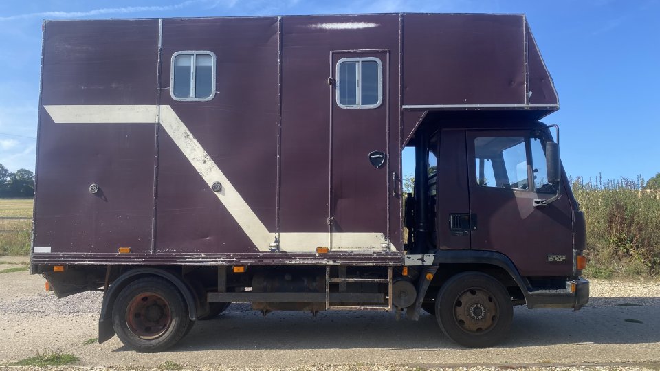 P461HNE 1997 Leyland Daf, 147048kms Highly reliable 7.5 tonne 2 ramp lorry, stalled for 3 x 15.2 and below (herringbone), but partitions can be easily reconfigured back to accommodate 2 bigger horses at no cost. Can carry horses in 2/3 ways due to options on placing of partitions. Huge payload as has a light body on a big 7.5 engine. Easy and nimble and very strong truck to drive with low mileage. This has been my first lorry and carried us safely all around the country for Pony Club events and hunting. Never broken down and highly reliable. Always starts first time and cruises at 55-60mph on the motorway. MOT’d until July 2026.Maintained by MS Horseboxes for last 15 years4 new tyres in 2024, new windscreen 2025 (as some cretin smashed a stone into it)Solid floor in good conditionWired LCD screen to view horses travellingHuge luton over cab for storage/sleeping3 saddle racks and bridle holdersLarge mirror for pre dressing/stock tieing/hair arranging! Very easy to clean as both ramps come down and can be quickly and easily swept outStored undercover since 2021Horses can stand on lorry with shade, breeze and open sidesExcellent and efficient heating system for post pony club journeys home! Very easy lorry to maintain and run and has plenty of life left in it. Low price for a quick sale £3000 More pics and videos on asking. References available from MS Horseboxes Based Bentley, GU10 Photos and videos:https://www.facebook.com/marketplace/item/835394445484865/