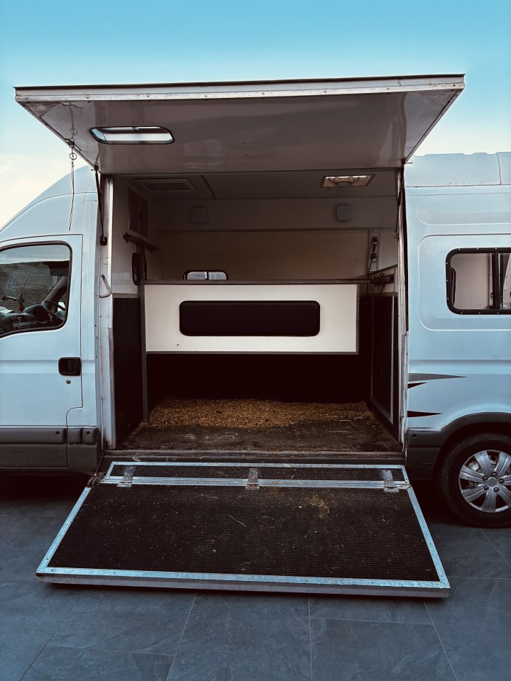 2008 Renault Master built to highest safety standards by master coachbuilder at Bethman’s Horseboxes. Owned by myself since conversion in 2020. Utterly reliable, strong and safe only for sale due to horse and rider retirement. £8250 ono. •143,700 miles • MOT until Nov 2026• Fully reinforced bulkhead and solid metal floor• solid, low gradient coachbuilt ramp with gas lift assist (can open and close ramp with one hand)• Extra high barn style doors and high padded roof for horse comfort• Emergency horse escape rear partition• Anti Jump bars (fully removable or can be pinned back if not required)• LED lighting to horse area• Camera for reversing and horse area• Professionally fitted EquiTravelSafe (horse seatbelt) worth £400 include in sale • Removable hay catcher Location Chippenham SN14.