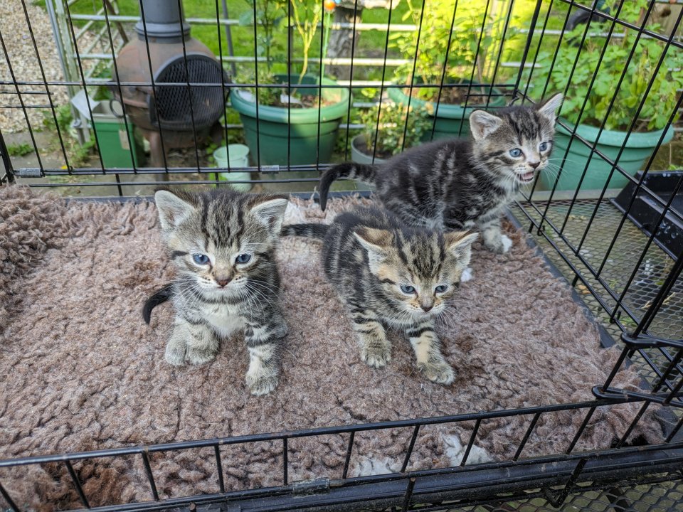 I have a litter of 5 beautiful tabby kittens, they are different shades of tabby2 female with white markings3 male, 1 with white markingsWill be wormed and flea treatedReady after 17 th may£150 each, viewings welcome