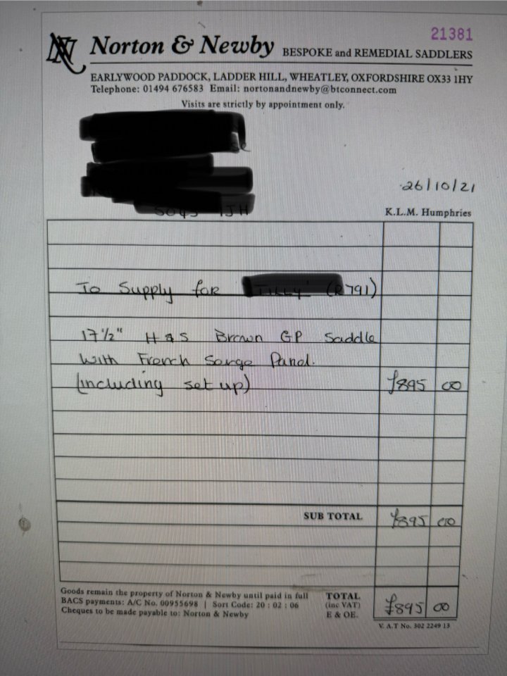 Purchased from Kay Humphries of Norton and Newby in 2021 second hand. It is one of Kays own saddle brands HS ( Humphries and Swain). It is very comfortable to ride and horses seem to really like the serge. It is in good condition, lovely leather and serge panels. It was regularly re-flocked when in use and well looked after. It was for my 16hh UK Sports Horse. Fairly wide. No longer needed and I need the space. £300 - price reduced as must go.