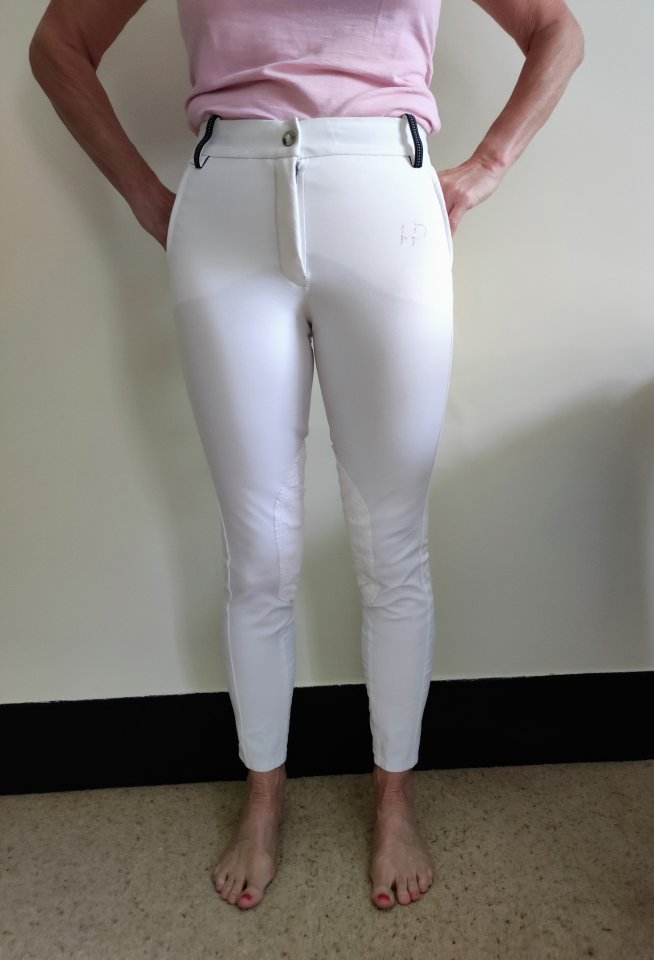 White competition breeches, worn twice.Size: 28RMake: Horseware Platinium. Lovely smart features including small crystal HP detailing, belt loops and patterned knee grips.Price £20, collect from Titchfield or Swanmore, or plus £3 postage.