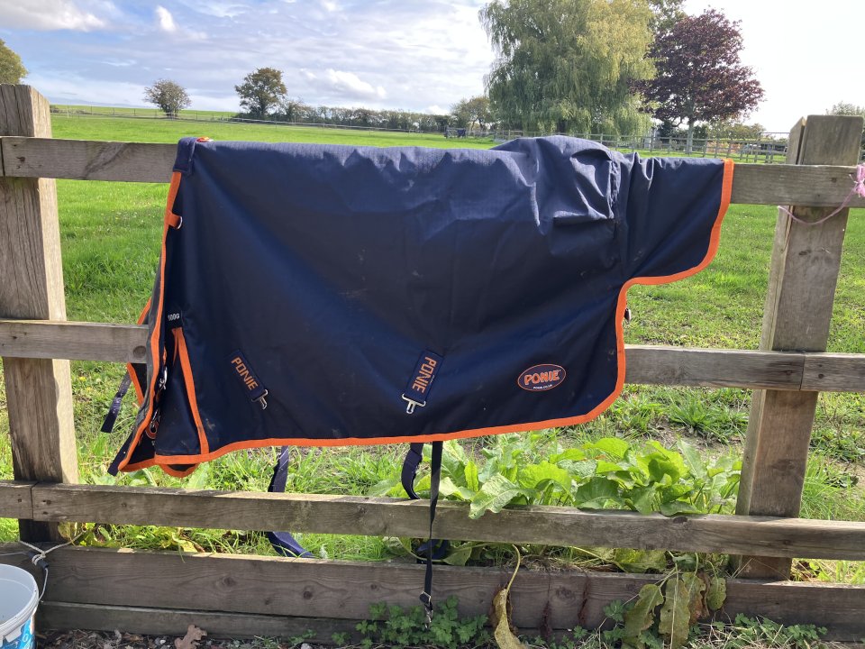 Ponie turnout rug. 600 denier ripstop outer. Breathable and waterproof. Nylon lining. Cross surcingles. Shoulder pad to stop rubbing. This rug has been worn only once, I realised it was too short for my little Welsh companion pony. I bought her the same rug in a larger size so this is for sale almost brand new. Cost £39.45 new. Will accept £20, buyer collects or pays the cost of postage.