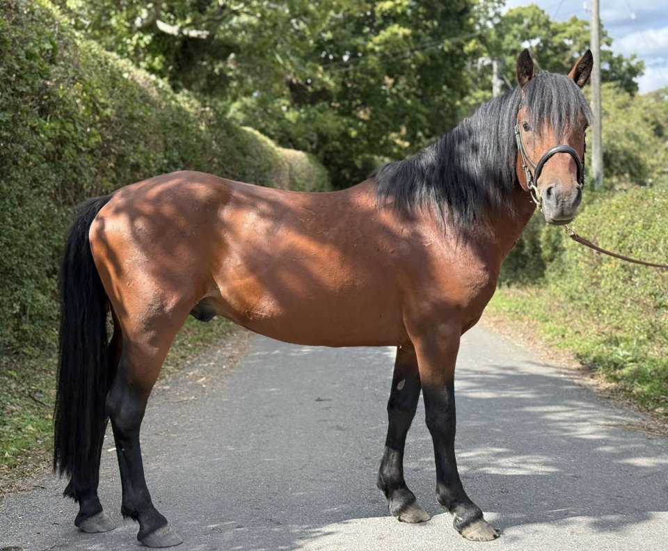 Pragnells Pippin. Registered NF 4yo gelding. 13.3hh & will finish 14hh+ Sire Pragnells Appletiser, Dam Sweetpea (Willoway Harry Potter). Pippin was a licensed stallion (gelded 6 weeks ago) & ran the forest last year. He is now ready for a new job & will make a good strong riding pony. Halter broken, ready to be backed & brought on over winter.