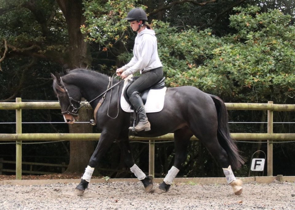 A super smart small horse who in the right hands has a very promising future schools nicely, enjoys jumping and is good to hack alone /company.