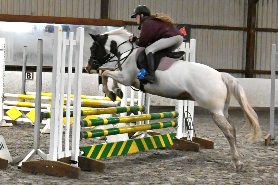 Pixel has been in a family home since being backed but had learnt to nap with her young rider. She is with me on livery currently and has been a star these past few weeks hunting with a 12yro girl a fortnight ago jumping hedges bigger than her and to a show this past weekend jumping double clear with another junior rider, she’s practically push button when she’s in gear and going.