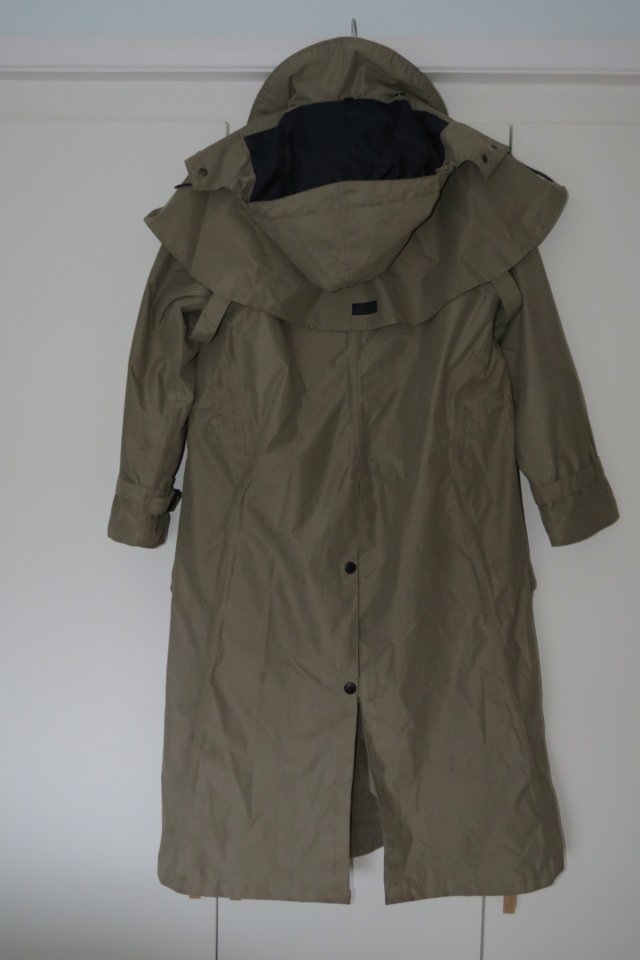 Waterproof, windproof and breathable with riding vents and a concealed pommel flap for riding. Velcro leg straps also keep the coat in place as you ride.