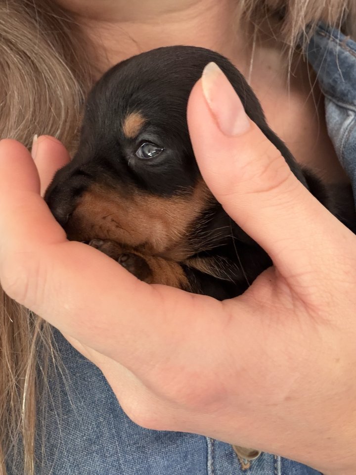 Dad is a miniature kc registered Black and Tan, mum is a miniature (very very small) kc registered Black and Tan miniature