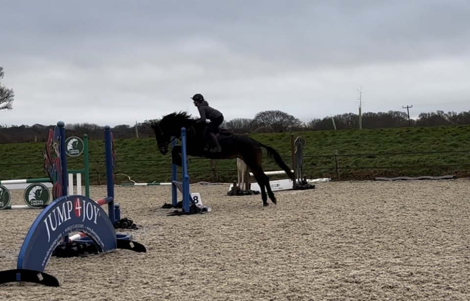 I have had Faye in my care for a month and she has been a delight to have on the yard. She stands for the farrier, to be washed and groomed, is polite to lead around, easy to turnout & catch etc. To a fence Faye is keen and bold, happily jumps round a course of 80cm, not spooky or silly. With time and strength, I think she would happily jump higher. I have not taken her XC however I believe she would jump the same. She has previously been to several PC camps and had no problems. I have hacked her out both alone and in company, through traffic and in open spaces. She is always sensible walks past all traffic, waits for gates etc. She is a forward ride out hacking however never silly. Her flat work is improving each time she is schooled, has 3 lovely paces, Faye is responsive off the aids and light in the contact. Once she develops more top line, I believe she would produce a beautiful dressage test.