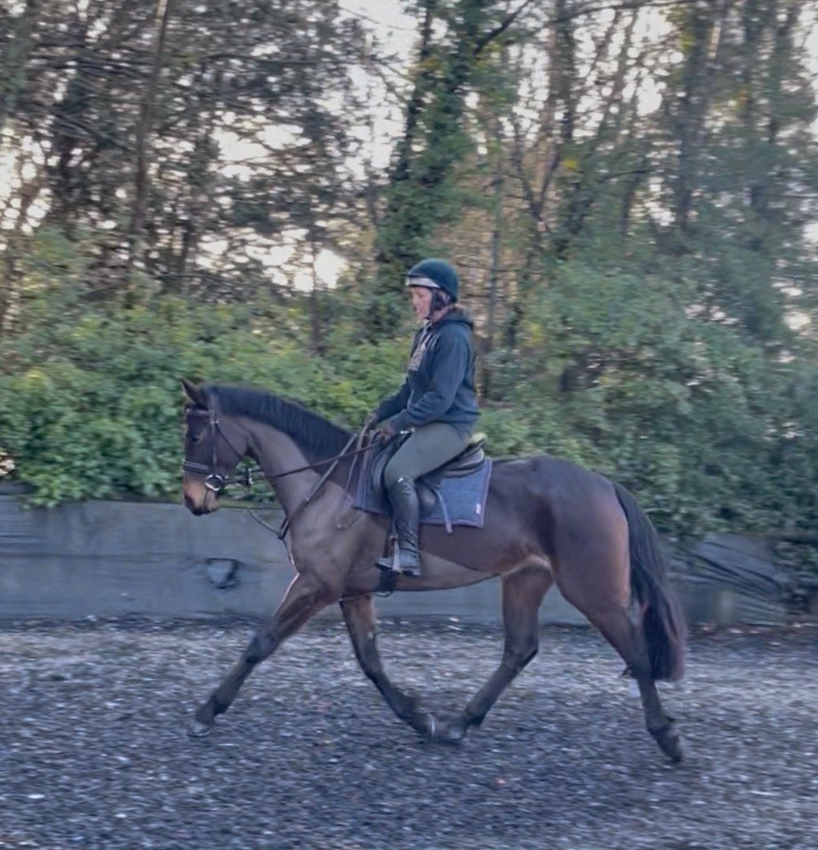 Autumn - approx 15.2, rising 5 year old ISH mare. Out of an ISH Mare by Lassban Master Imp. Autumn is a super sweet and kind mare who has a lot to offer. Lovely little mover, dainty type with smooth paces and a comfortable canter. Backed and ridden away last spring and did a little bit of everything over the summer. Competed showing (and won!), unaffiliated dressage, plenty of arena hires, lightly XC schooled, been on a beach ride. Since then she’s done plenty of hacking (hacks alone and in company) and light schooling and had a short winter break over Xmas. Loves her jumping and has a good pop on her, not been over jumped and ragged about, she’s confident in her work and enjoying it. She would go on and do a variety of jobs, showing (would make a lovely large hack), grassroots eventing/dressage/ classy riding club allrounder, world is your oyster! She is an absolute pet on the ground and very easy to have around, absolutely loves a groom and a scratch. A kind little soul who is a real people person and doesn’t mind my dog round her legs/licking her nose, good with other horses. Good to catch/bath/shoe/clip/load/travel. 5 stage vetted before import with no issues, now ready to find her next human.