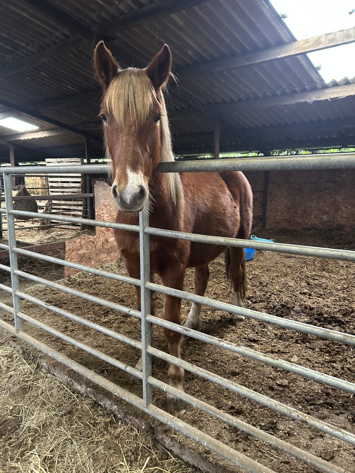 Has been produced very slowly so far, been living out in a herd and come in during winter for further education and handling. Is picking up all feet. Will lead nicely in a head collar. Getting used to grooming. Very inquisitive and kind and super willing to learn and a very quick learner.