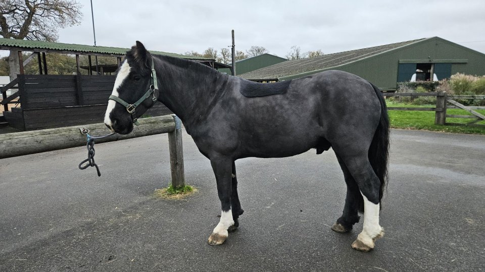 Jimmy is a 4yr old (rising 5 this year), 14h, black gelding cob. Jimmy came to us from Ireland in February last year and since being with us he has been very relaxed and willing and has taken everything in his stride. He adapts to new experiences well and aims to please. He has been out on sponsored rides, hound exercises and hunting this year and has been very safe and sensible during every outing, ridden in a snaffle. He has loaded and travelled well each time we have taken him out.