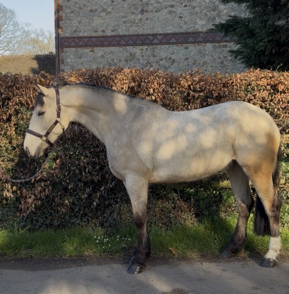 Tilly - 15.2, 4 year old (2022) Cob x TB mare by Rocky McGuire out of a TB mare, breeding recorded. Tilly is a super type, she has been well started and been out and seen a little of everything. Been to arena hires (sj & arena XC fences) and clinics, popping a little course of fences and has done a days hunting recently for education where she showed herself to be well behaved in a group and jumped everything asked of her. Working in all 3 paces in the arena with a nice balanced canter for her age. Hacks alone and in company and has been good in the traffic met to date. A lovely little mare that will make a super allrounder. Still a young mare so not the finished article yet, shed suit a variety of people but mainly wants someone that is understanding and able to hold her hoof when she needs it and guide her. Easy to have on the yard and a sweet chilled temperament. £9500
