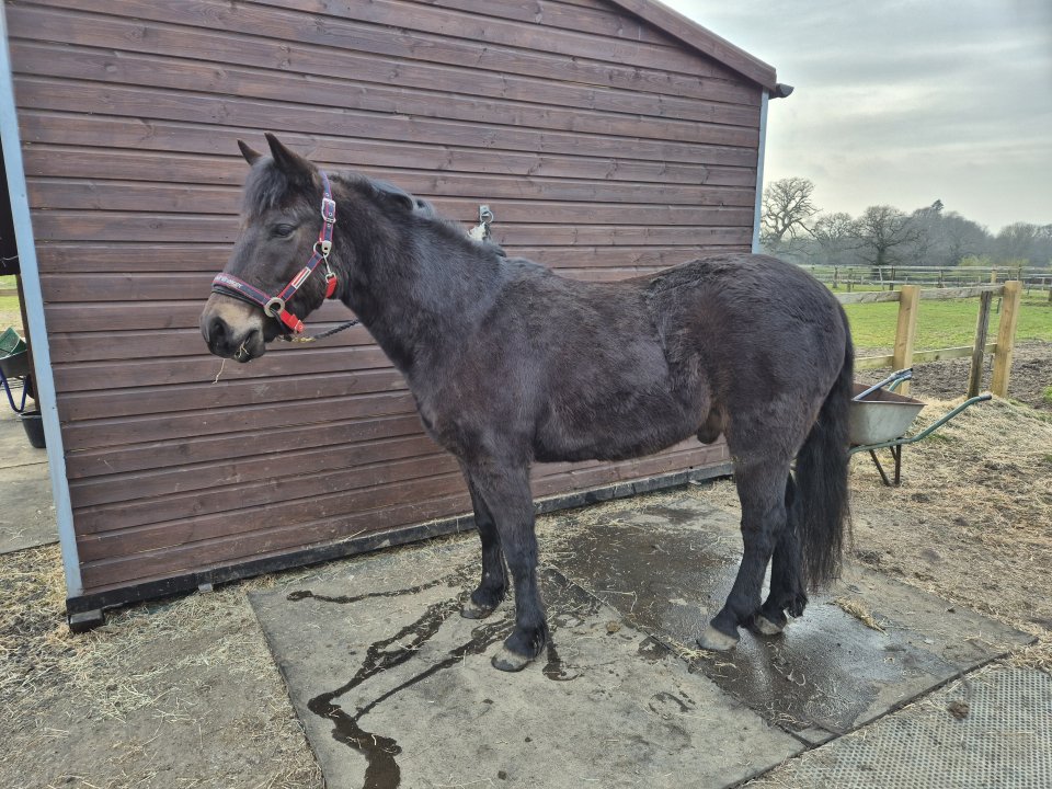 He's up to date with vaccinations and currently barefoot. He is generally good with the farrier but a lick or haynet stops him from fidgeting! Currently measuring between 13.2 and 13.3hh.