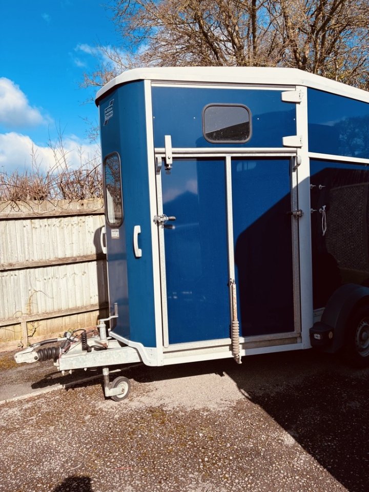 Price: £5495 Overview For sale is my well-maintained Ifor Williams Bala Blue HB511 MK2 double horse trailer. As the largest model in the Ifor Williams range, it is specifically designed to transport two large horses (up to 17.2hh) in comfort and safety. It tows beautifully and offers significantly more internal width and headroom than the 506 model. Key Features & Specifications Capacity: Stalled for two horses up to 17.2hh. Floor: Solid aluminium floor with heavy-duty anti-slip rubber matting. Loading: Full-width gas-assisted rear loading ramp and a left-hand (nearside) front unload ramp for easy forward exit. Interior: Large front inspection window and side windows for maximum natural light. Safety: Includes full centre partition, breast bars, and breeching bars as standard. Security: Fitted with the DATATAG™ security system. Dimensions: Internal length of 3.52m and internal width of 1.79m.