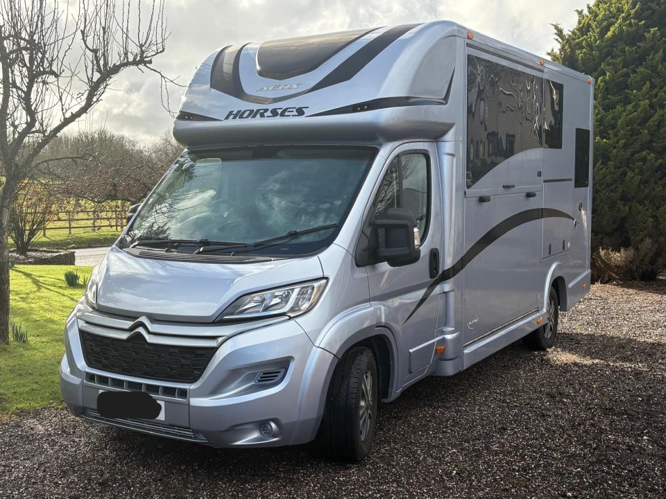 Kevin Parker Aeos Hybrid 4.5T horsebox in Ice Blue metallic just 3,977 miles from new, excellent condition with a payload of 1.68 tonnes.• 4.5 tonne build with payload of 1.68 tonnes• Sliding partition for adjustable horse area• Lockable large external tack locker• Additional internal storage lockers• Sink and hob in compact living area, sleeps one in rear and another in luton• CCTV with viewing of horse travelling and reversing camera• Water system and Thetford Toilet (not used)• Sat nav, hands free telephone, cruise control, leather seats in cab• Additional decals custom on metallic paintwork• Exceptionally clean and well maintained, like new inside and out• Built in Solar charger, air suspensionComes with full service history, test due June 2026.Perfect box for those looking for reliability, comfort and quality finish for horse(s) and rider(s). Rare to find with such low mileage and condition — only owned for 4 months - genuine reason for sale.£45,900 ovno