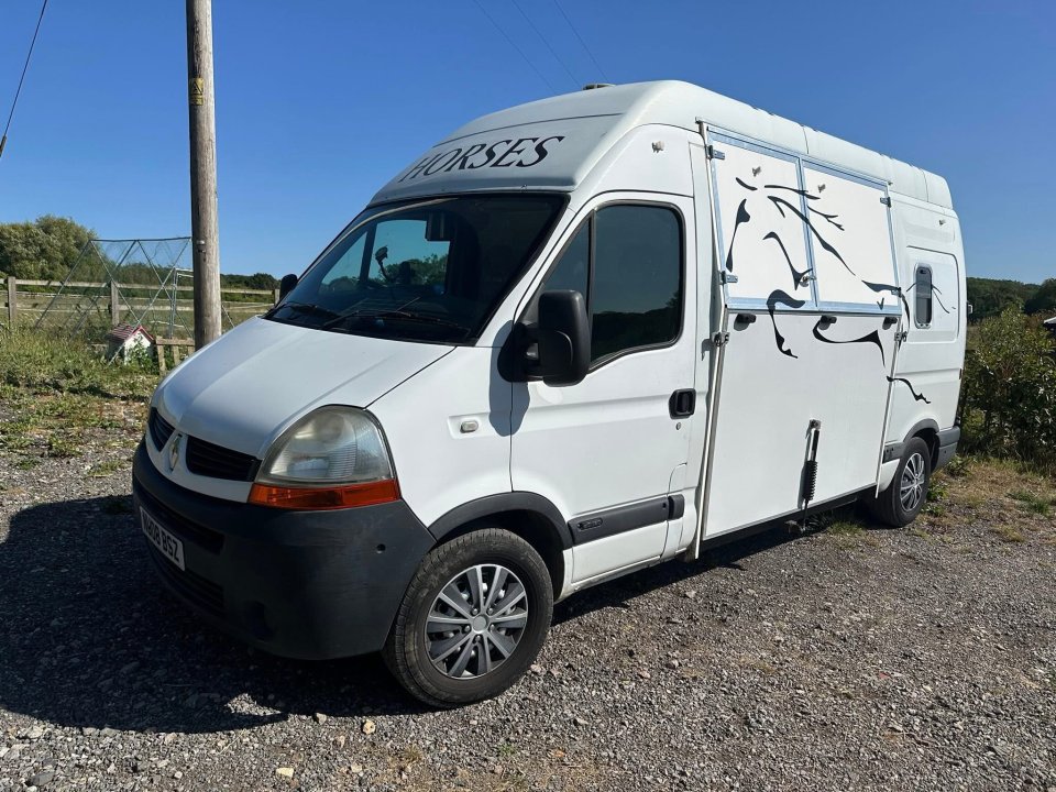 Renault Master DCI 150 Manual Horse BoxHappy Horse Boxes conversion in 2022 and owned by me since.The horse box weighs 2.3 ton, leaving a payload of 1.2 ton and can comfortably take 2 horses.MOT until 08.07.2026 - No advisorys Reg NU08 BSZ3 Owners from newcomes with part service history and Mileage is 175,000Horse box includes:10mm Rubber walls in horse areaReinforced bulkheadFixed breast bar Partition with padding and spring bolts to secureLiquid rubber floor 4 LED lights 2 windows for natural light and air circulation1 Pop up roof vent and 1 wind driven roof vent for additional air circulation Steel frame ramp with Aluminium planks, instead of ply, for security and strength with carpet finish, with one gas strutBarn Top doors Lock for security1 large storage box and 1 x seat with storage in rear of van3 x external tie up rings Internal and external hard wired camera system Spare wheel All tyres are in good conditionMechanical inspections are welcome.£7,995Viewings at Marwell or Stubbington (Hampshire)PM for any additional information.