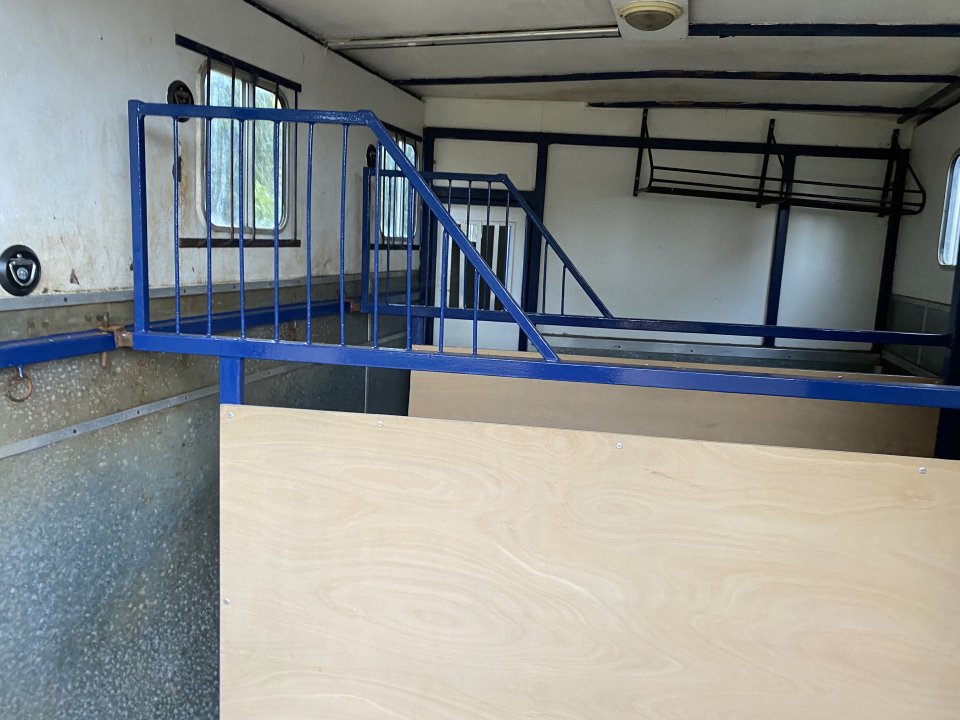 LWB model, deisel engine. Professional conversion - stalled for 2 with adjustable partition, horses travel rear-facing. Seperate rear tack/ changing area with saddle rack, bridle hooks and two seats - plenty of room for all your kit. Excellent height and length in horse area - accommodates 16.2hh Two side opening windowns in horse area, roof vents and internal lighting. Split side ramp with uplift door - the hinges here are sound, but the last two need attention due to loose screws. 151379 miles. We're very sad that due to the children outgrowing their ponies and no plans for anymore, we have to let 'Big Blue' go. Structurally and mechanically sound – starts first time and drives well. Serviced annually. Cosmetically shows age with a few bumps and scrapes. Ideal reliable workhorse rather than a show lorry, it's super easy to drive. Cab is clean, seats 3, remote central locking & manual gearbox.