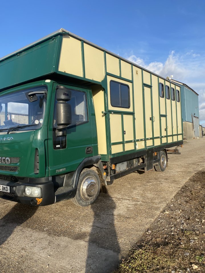 A lovely short wheel based 7.5T lorry which is super easy to drive and manoeuvre. We have owned this for 12 years and it’s always been very reliable.2003 with only 149,900 kilometres on the clock - regularly serviced (receipts available) and plated to the end of October 2026.HORSE AREA:Spacious and stalled for 2 large horses, no tack boxes etc in the horse area.The ramp has recently been re done (photos available) and easy to use.Aluminium floor in horse area.LIVING AREA:Comfortably sleeps 4, 2 above the luton and a bed which can be converted from the seating area.Gas hob, sink and worktop, seating and table.2 saddle racks in the living area.Ample storage lockers.Happy to provide videos or answer any queries.Located between Newbury and Basingstoke £12, 950 OnoPlease call Richard for more information on 07766 168 776 - our reception is quite poor so please leave a message if we don’t answer and we I’ll call back.