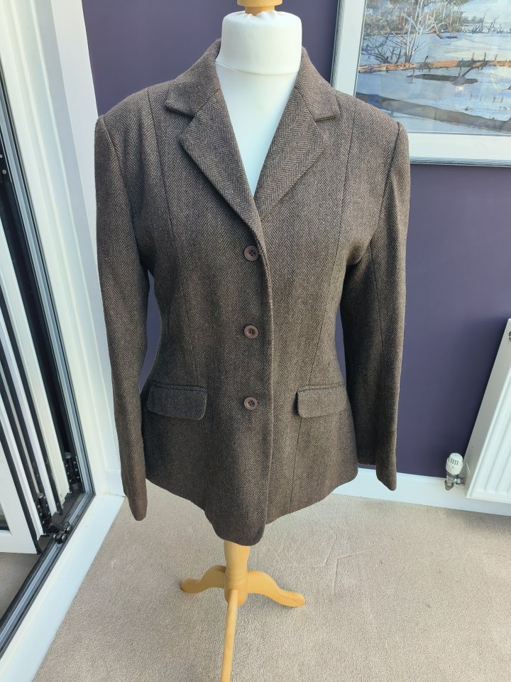 Hacking jacket, scotch Tweed. Perfect condition. Horace Barton and sons of Cheltenham. 36. Size 12/14. £50. Green Tweed.pure wool.Sherwood forest hacking jacket size 14/16. Wool , acrylic. £35 very good condition.Caldene Riding jacket. Black with velvet collar.ladies 36.Excellent condition.£35.Black riding jacket. Easy rider.polyester size 14. Excellent condition £30