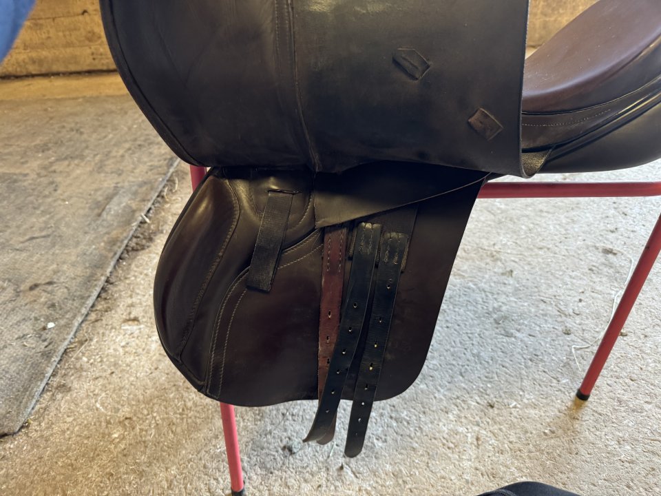 17.5" GP Brown Saddle with French Serge panels.Purchased from Kay Humphries of Norton and Newby in 2021 second hand. It is one of Kays own saddle brands HS ( Humphries and Swain). It is very comfortable to ride and horses seem to really like the serge. It is in good condition, lovely leather and serge panels. It was regularly re-flocked when in use and well looked after. It was for my 16hh UK Sports Horse. Fairly wide. No longer needed and I need the space.£300 - price reduced as must go.