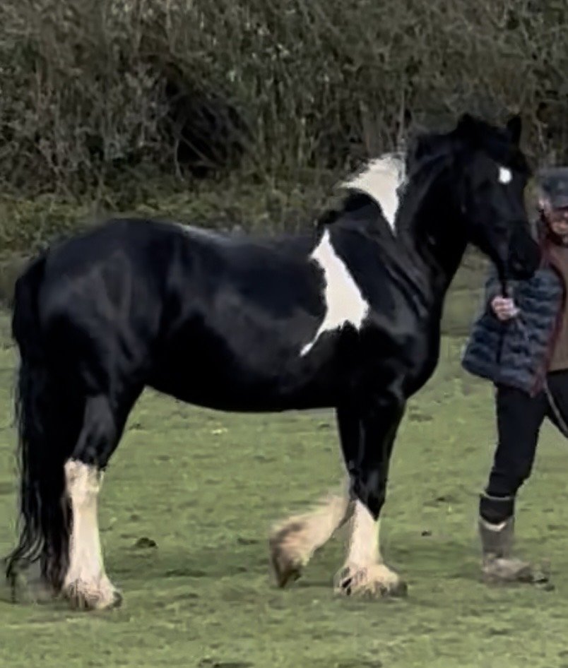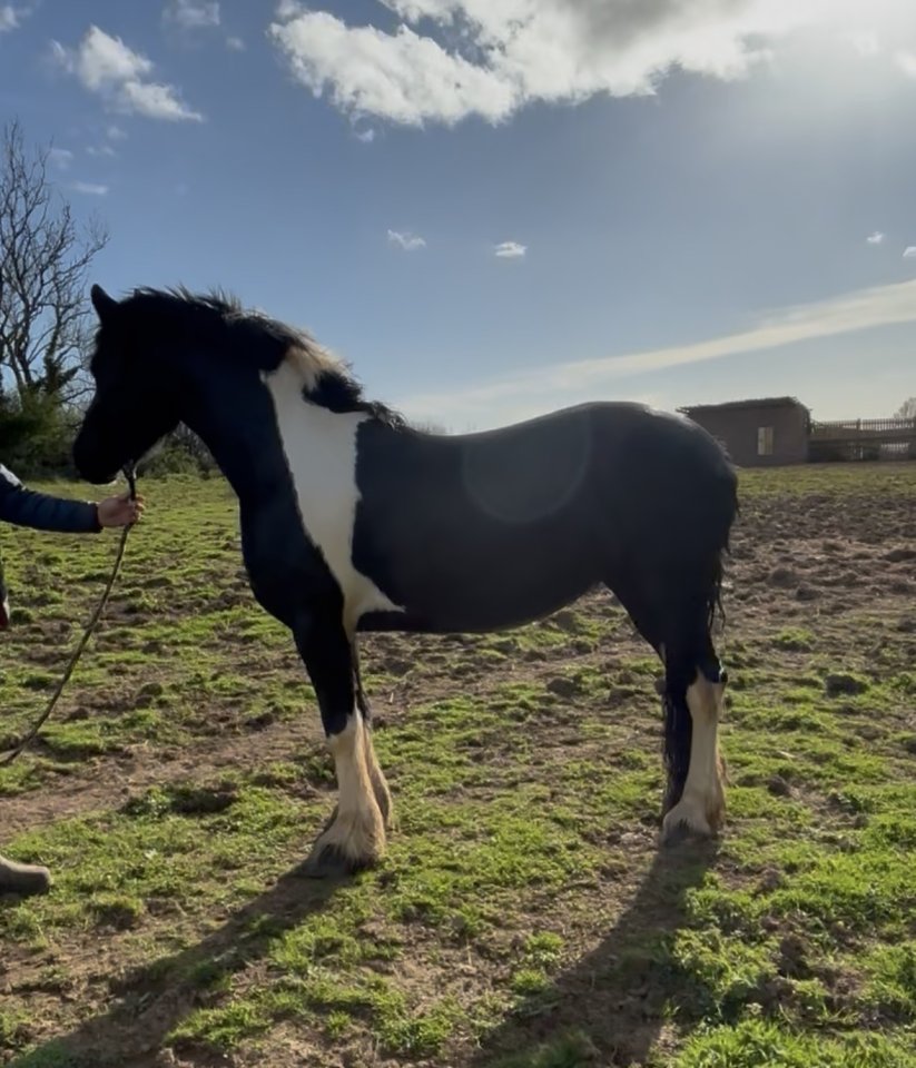 Friesian cross cob 4 years old homebred mare for sale. Standing at 15 Hh now. Sire is a 16Hh full Friesian can be seen on viewing. Dam is 15.2 cob x friesian mare. Both sire and dam have fantastic temperaments which she has inherited from them. She sees the Farrier on a regular basis and is halter broken she has been left to grow and mature . She is a blank canvas ready for someone to put their own stamp on. She is straight and correct with fantastic movement and well marked a real head Turner making her a fantastic prospect for any sphere. She has slightly rubbed her main and tail. Videos of request. Only Selling due to cutting down. Good Home, a must no time wasters. £4000